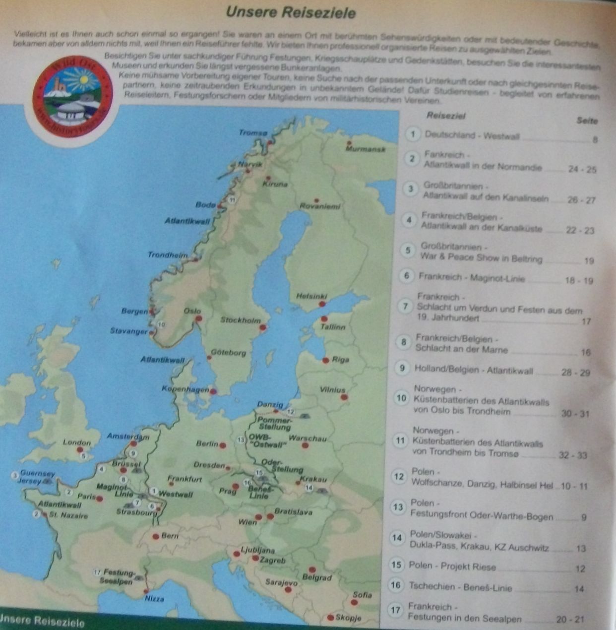 Zobaczycie też zdjęcia katalogu niemieckiego opisującego trasy jakie oferują biura podróży miłośnikom fortyfikacji w całej Europie. Jest to potężny interes.