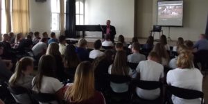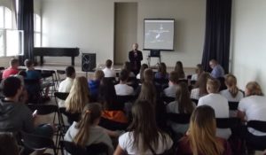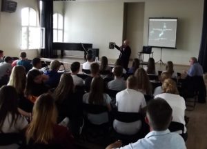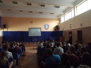 (zgromadzona młodzież w Zespole Szkół Akademickich bardzo uważnie wysłuchała mojej prelekcji, co więcej była świadoma historii o której opowiadam; na moje pytanie o skrót UPA usłyszałem odpowiedź, co więcej dowiedziałem się że niedawno był w gościnie generał Mirosław Hermaszewski, kresowiak pochodzący z wsi Lipniki na Wołyniu – cudem ocalały z rzezi, jego ojciec zginął zamordowany przez banderowców)