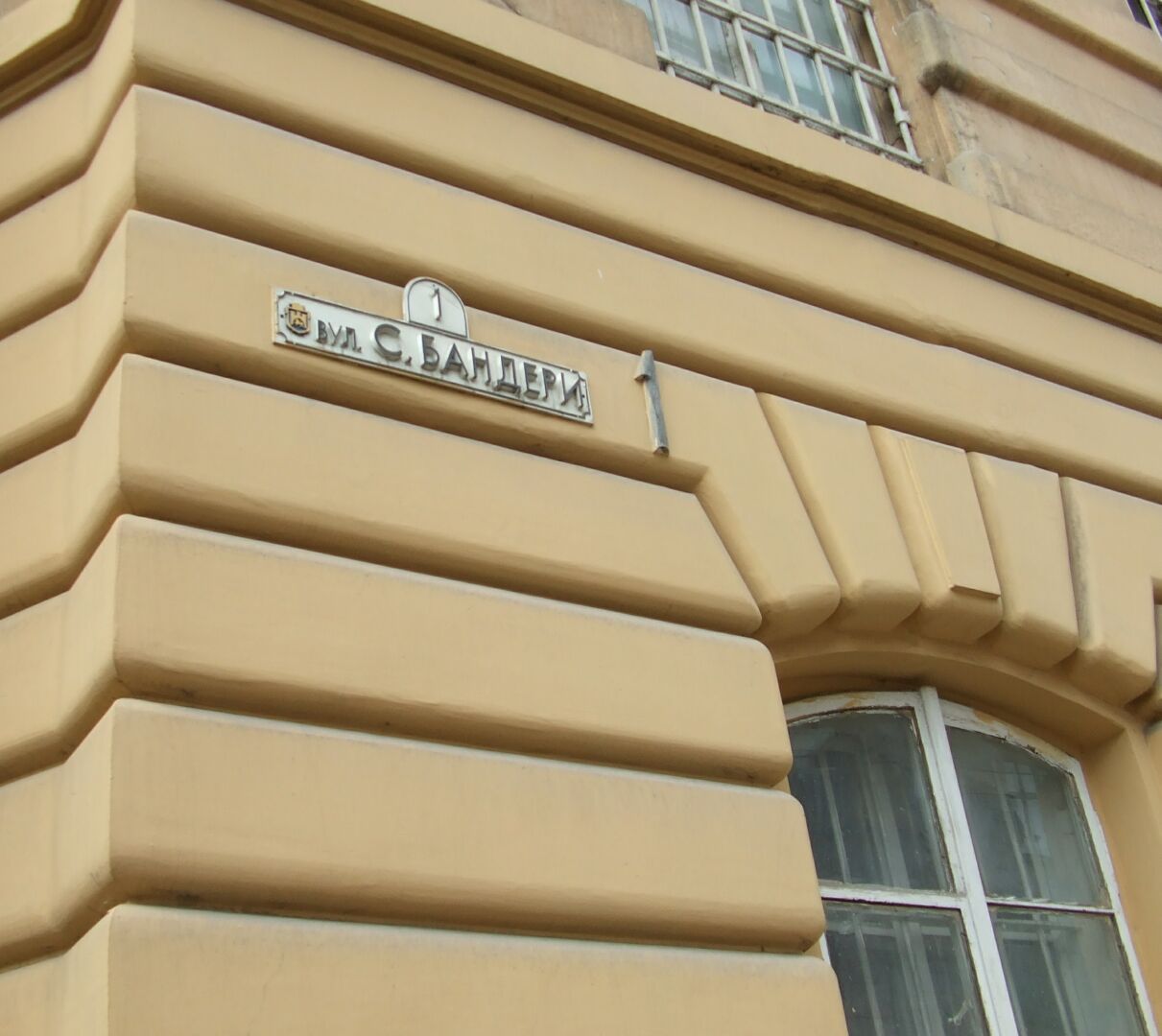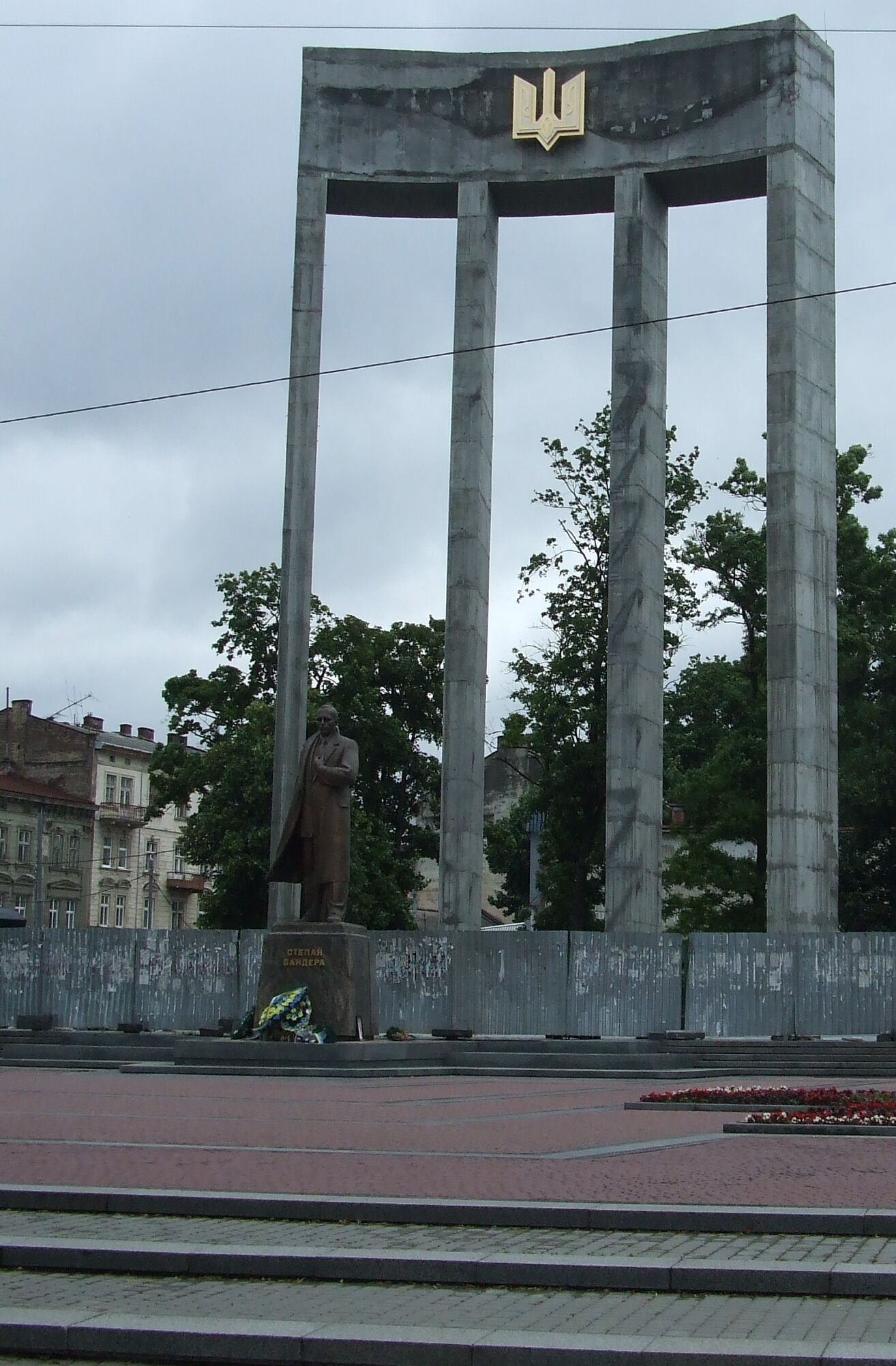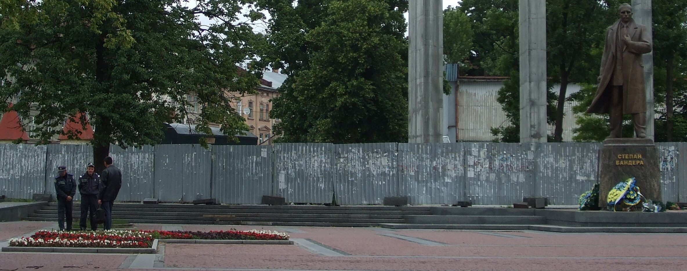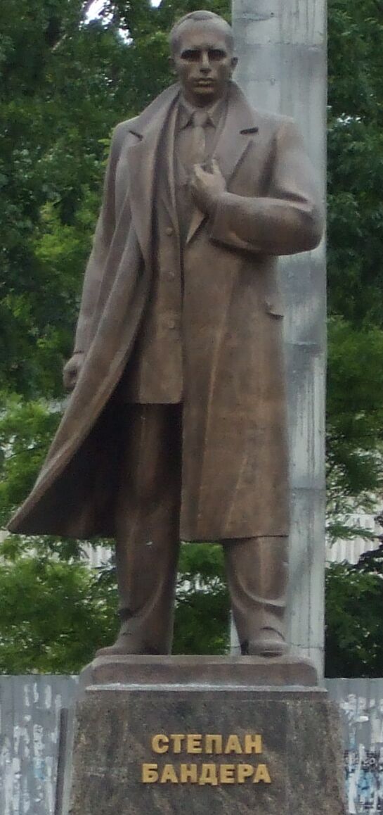 Pomnik Bandery, w różnych ujęciach, wzorniczo widać że podobny jest do pomników Lenina. Widać także nieoficjalną straż przy pomniku dwóch milicjantów, którzy pilnują aby składano tylko kwiaty przy pomniku, a nie np. obrzucano butelkami z farbą czy kwasem. W przypadku popiersia Szuchewycza na ścianie polskiego Liceum we Lwowie ma to miejsce. Jest też zdjęcie z ulicą noszącą nazwisko Bandery.