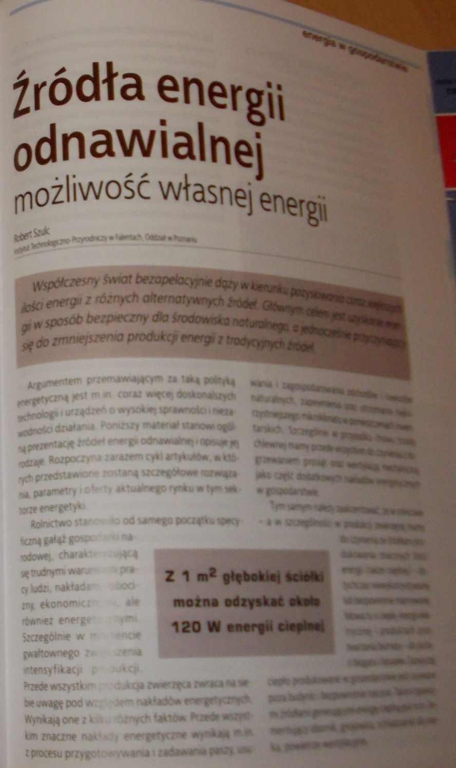 Poniżej kilka zdjęć przedstawiających fragmenty artykułu autorstwa Roberta Szulca z „Hodowcy Bydła” nr 1/2013 pt. „Źródła Energii Odnawialnej – możliwość własnej energii”