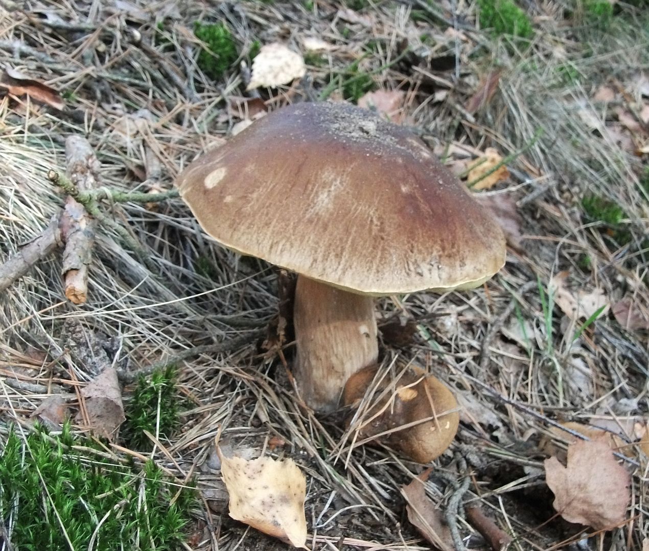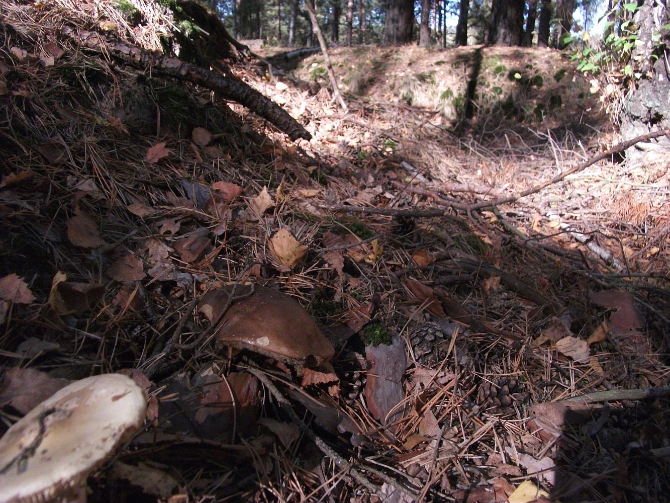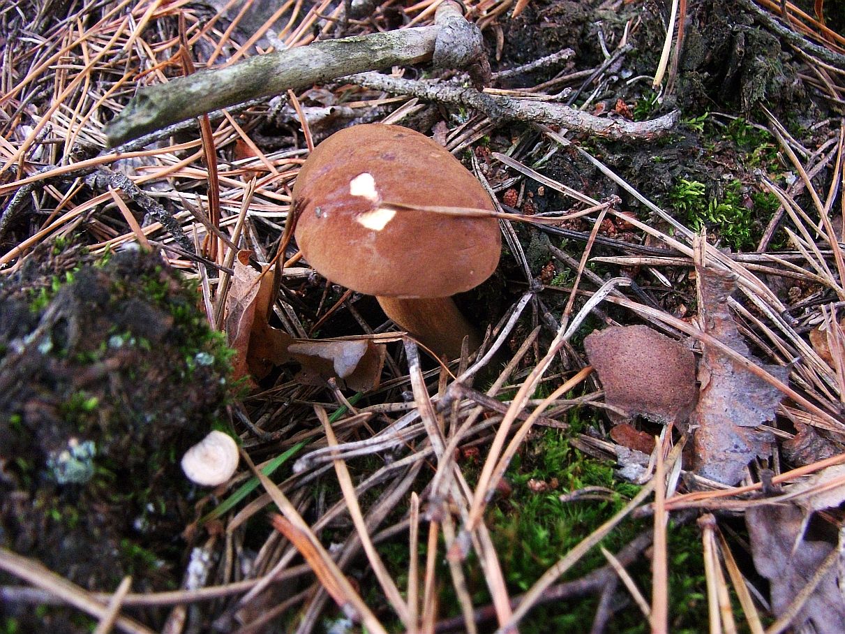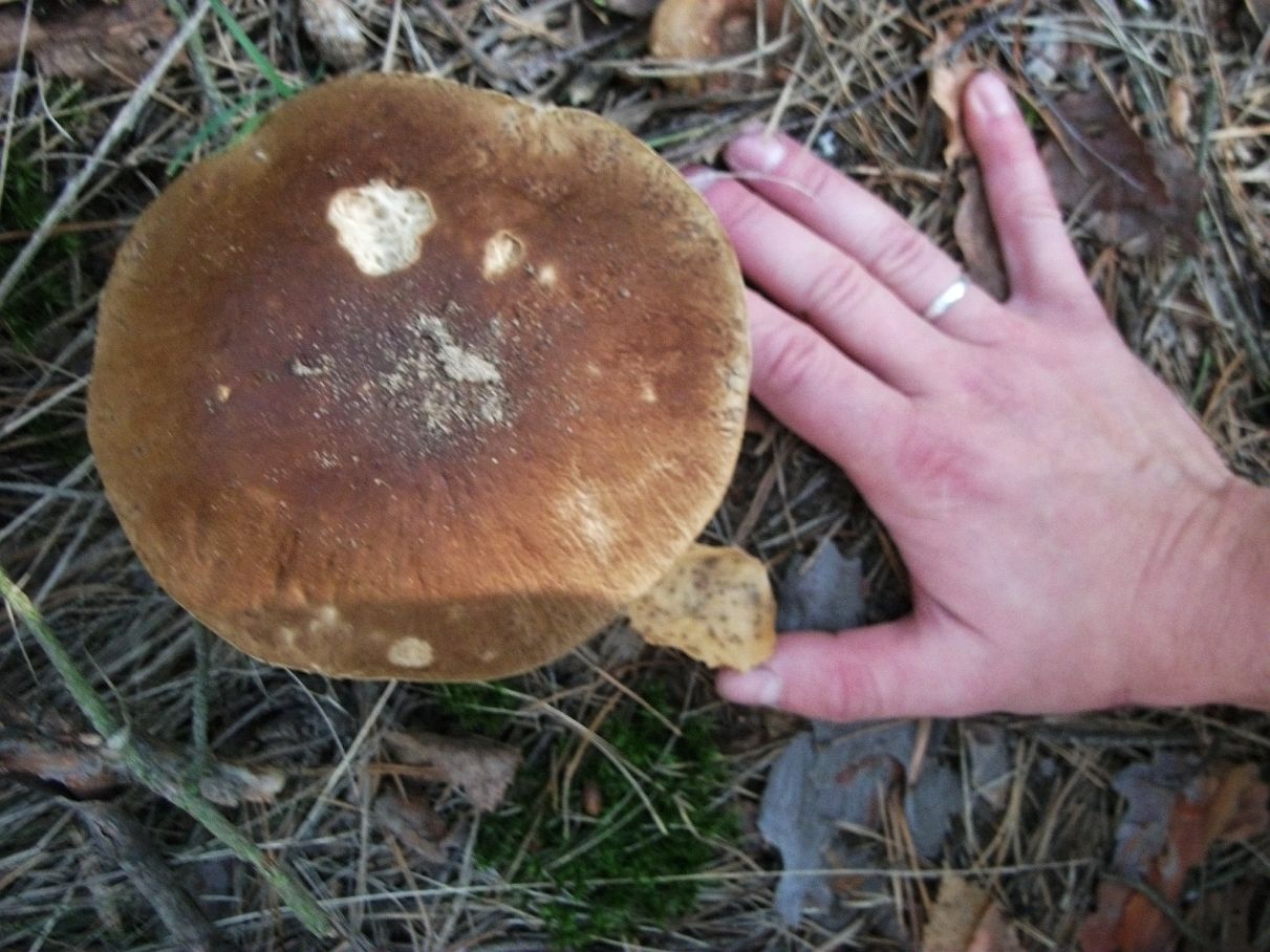 Jak zwykle bez pośpiechu ruszamy w „bój” o jedenastej z minutami w niedzielę… tak! Niektórzy grzybiarze rzekliby: bez szans na porządne łowy…Nieprawda, nie tam. W ciągu godziny z małym haczykiem mamy ponad trzy kilogramy. Tuż po zatrzymaniu samochodu, wychodzę na ściółkę gdzie znajduję cztery podgrzybki, kilka chwil później prawdziwek, którego kapelusz jest wielkości mojej ręki, z wrażenia depczę innego prawdziwka…