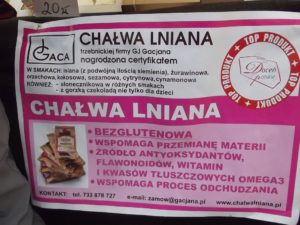 Na sam koniec zostawiam stoisko z chałwą lnianą. Kupiłem pięć rodzai. Bardzo dobra, polecam, aczkolwiek inna w smaku od tej ze wschodu.