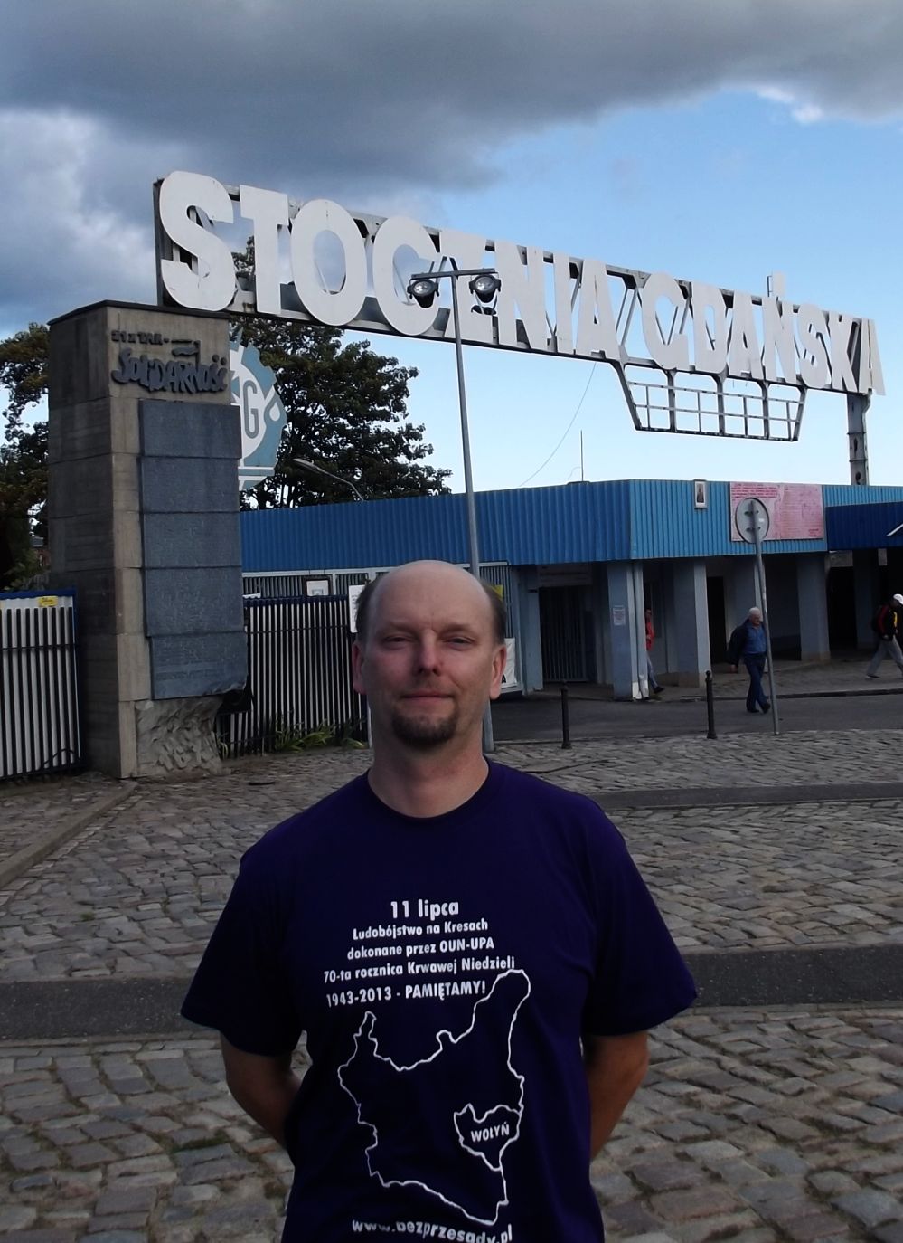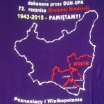 Tym razem miałem koszulkę z 70-tej rocznicy. Z pierwszej serii – w ogóle wyprodukowanej. Fioletową. Z przed pięciu lat… Nie myślałem wtedy że tak wielkim echem ten ślad, dowód pamięci odbije się w społeczeństwie poznańskim. Niedawno podszedł do mnie młody człowiek na Półwiejskiej po mojej wizycie w Pierożaku – gdzie podają wspaniałe pierogi robione przez Ukraińców.