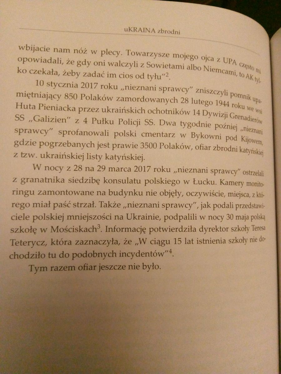 Garść fotografii książki pt.: „U-kraina Zbrodni” autorstwa Lecha S. Kępczyńskiego i niektórych stron, w tym spisu treści. Powinno wystarczyć do zareklamowania i zachęcenia do zakupu. Ponad 600 stron wyjaśnia wszelkie chyba wątpliwości dotyczące nacjonalizmu ukraińskiego i współpracy ze zbrodniczą III Rzeszą: