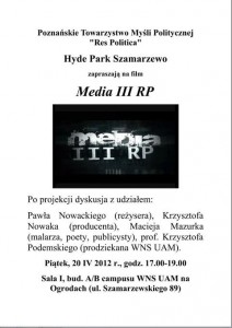 Ważniejsza jest jak widać sprawa Madzi, która służy po prostu zapychaniu tuby mediów. Jak mówił Paweł Nowacki na spotkaniu w zeszły piątek na kampusie WNS w Poznaniu: dziennikarze obecnie nie mają już poczucia misji społecznej, wskazywania społeczeństwu trudnych spraw, pomocy w ich rozwikłaniu…