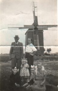 Szelągowscy; rodzina w tyle wiatrak zbudowany w 1885 roku.