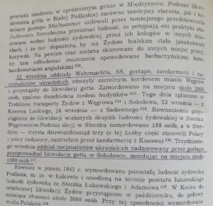 „…oddział nacjonalistów ukraińskich nadzorowany przez oddział Gestapo przeprowadzał likwidację getta w Sokołowie mordując na miejscu około 1000 osób…”