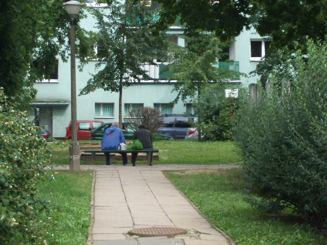 Chciałbym zwrócić uwagę że zdjęcia były robione w tym samym mniej więcej czasie. W zasadzie na tych porzuconych i opuszczonych pseudo miejscach do zabaw nie było żadnych dzieci. Tylko na placu zabaw przy forcie były i to nie tylko dzieci ale jak widać na zdjęciu nawet starsza młodzież. Co pokazuje jak ważne jest otoczenie do zabaw czy spotkań. Na osiedlu wykryłem mnóstwo zarośniętych miejsc które można by zaadaptować na przyblokowe place.