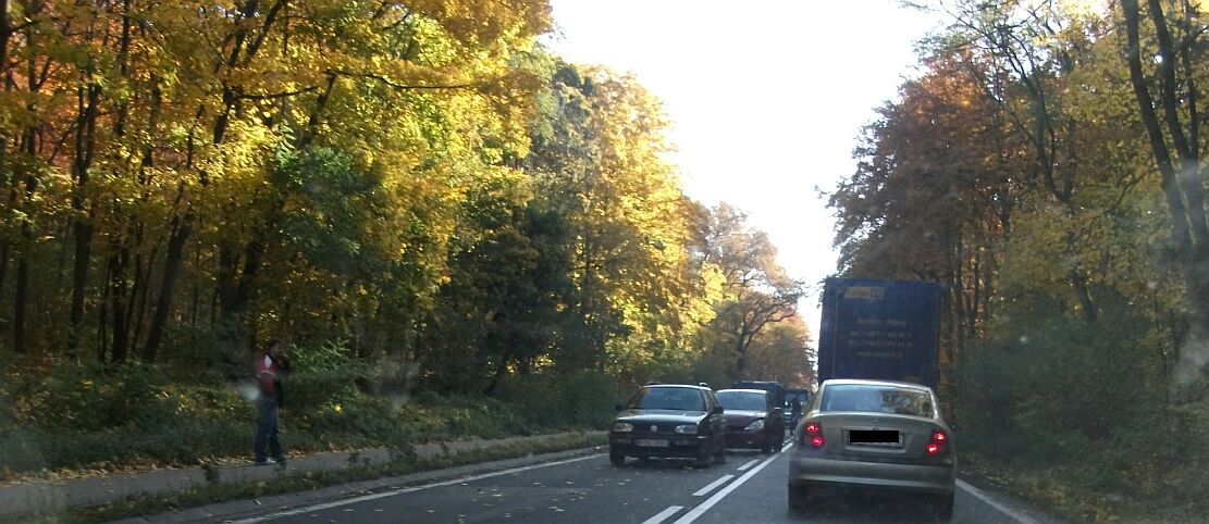 Poniżej kilka zdjęć z polskich dróg. Zwracam uwagę na jedno; w Zielonej Górze natknąłem się na sygnalizację świetlną z odliczaniem sekundowym przygotowującym do ruszenia pojazdem. Jest to doskonały pomysł, moim zdaniem (na zdjęciu to ten pojedynczy, górny sygnalizator). Inne zdjęcia przedstawiają piękne jesienne widoki, jakie można zaobserwować jadąc przez Polskę. I także niestety, jeszcze jeden aspekt polskich dróg, tzw. „tirówki”, polskie prawo nadal nie potrafi się uporać z zlikwidowaniem wyzysku tych biednych kobiet, bo przecież ogólnie wiadomo, że część swojego „wynagrodzenia” oddają one swoim „opiekunom”. Już sam fakt poniżenia się do handlu własnym ciałem jest niezmiernie przykry i bolesny. A dodatkowo wyzysk przez innych, silniejszych, tym bardziej zostawia wiele do myślenia, coś państwo powinno zrobić z tą formą wykorzystywania kobiet. Dziwię się, swoją drogą, że organizacje feministyczne milczą na ten temat. Przecież jest to ewidentne zniewolenie, za to w temacie usuwania ciąży wykazują się „wspaniale” jak widać są mniej ważne i bardziej ważne tematy, wyzysk bezpośredni kobiet mniej je same interesuje, niż naturalna funkcja biologiczna polegająca na przedłużeniu gatunku. I prawo do decydowania o niej w kontekście decydowania o życiu innej osoby, ponieważ nowe życie jest bezwarunkowo nową powstającą istotą ludzką (pisałem już wielokrotnie o tym na różnych stronach np: Jeśli umiera twoje dziecko ).
