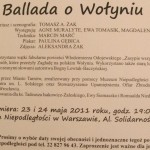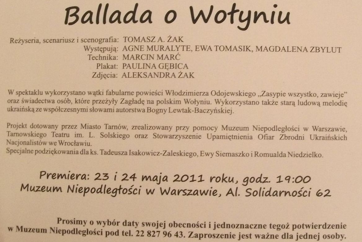 Dziś tj. 29 kwietnia 2012 roku w TV Trwam zostanie wyemitowany spektakl „Ballada o Wołyniu” Spektakl w którym pokazane są metodą artystyczną losy Polaków i Ukraińców mordowanych przez OUN-UPA. Polecam wszystkim.
