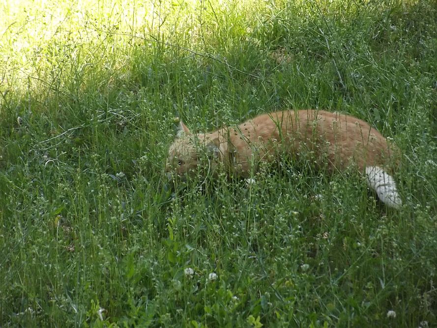 Udało się „wyczaić” ten moment, kot dostrzegł coś w gałęziach rosnącego nieopodal drzewa…: