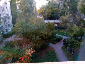 Widok za oknem Domu Tramwajarza, polska jesień…: