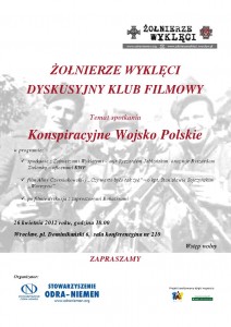 Zapraszam do Wrocławia na najbliższe spotkanie z cyklu Dyskusyjny Klub Filmowy – Żołnierze Wyklęci. Tym razem temat dotyczy KONSPIRACYJNEGO WOJSKA POLSKIEGO.