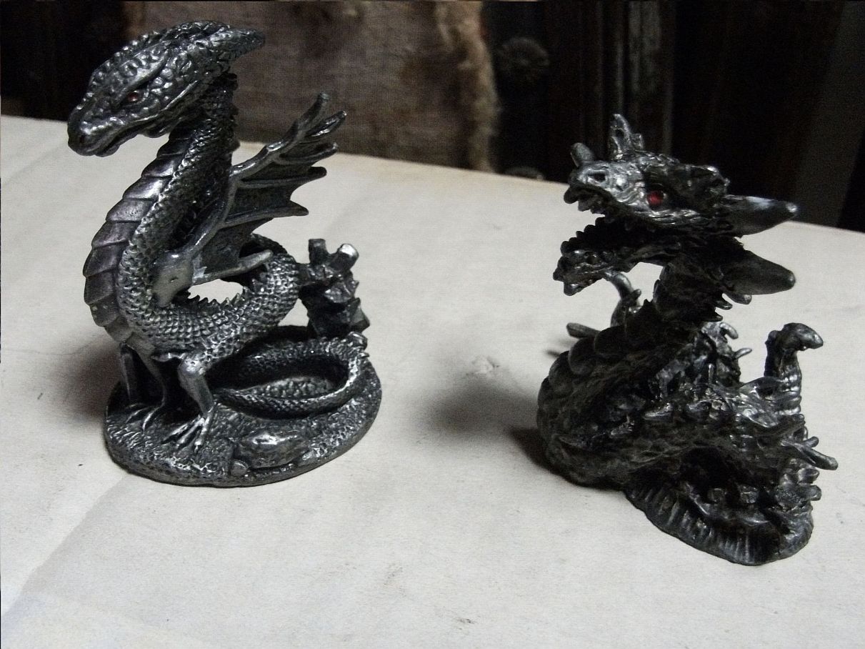 Ostatnio byłem u kolegi w sklepie ze starociami, i natknąłem się na cynowe figurki smoków. Tak mnie zafascynowały, że zrobiłem im kilka zdjęć w roboczych warunkach. Wiem, że takie figurki są używane do różnych gier planszowych. Są to faktycznie małe dziełka sztuki…