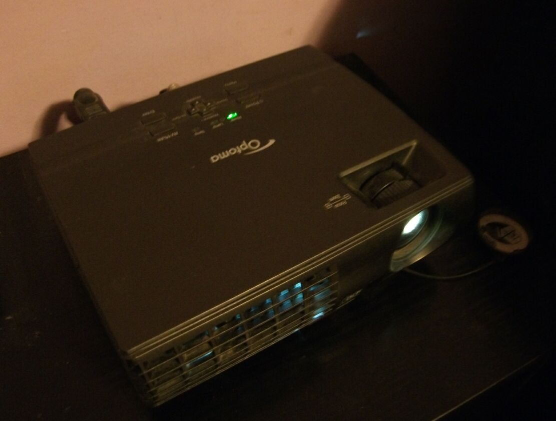 Wracając do projektora: aby zaoszczędzić jeszcze bardziej (piszę to z myślą o tych którzy marzą o kinie domowym z prawdziwego zdarzenia jednakże w kieszeniach nie mają zbyt dużej kwoty pieniędzy), możemy nie kupować ekranu, posiadając białe ściany, chociaż można wydać kilkadziesiąt złotych na specjalną farbę która lepiej absorbuje światło z projektora. Bardzo udanym modelem projektora jest OPTOMA EP 7155 i jego następcy. Duża ilość wejść (w tym HDMI), małe rozmiary, waga do 2 kg, niesamowita żywotność lampy (mój ma przepracowane ponad 3 tys. godzin w ciągu dwóch i pół roku – nie oszczędzam go), i niska awaryjność (to już wiadomości od zaprzyjaźnionych dystrybutorów tego typu sprzętu- inne firmy zdecydowanie gorzej wypadają). Zalety można by jeszcze wymieniać długo. Niemniej jest to niezły początek zabawy z prawdziwym kinem domowym. Obraz, który można standardowo uzyskać w pokoju około 25m2 to 80-90 cali. Aby kupić TV dający podobną przekątną musielibyśmy wydać około 100 tys. zł.