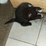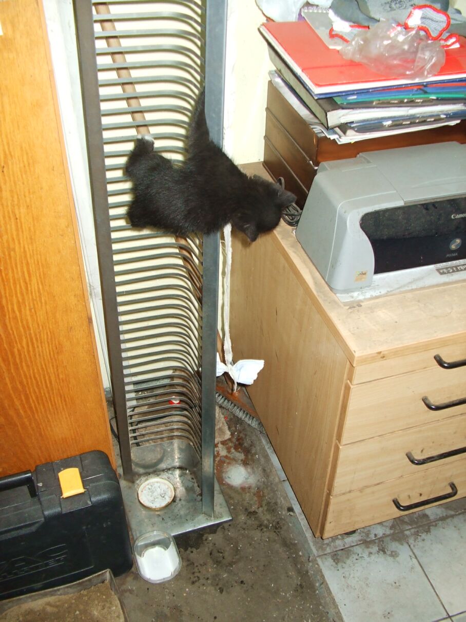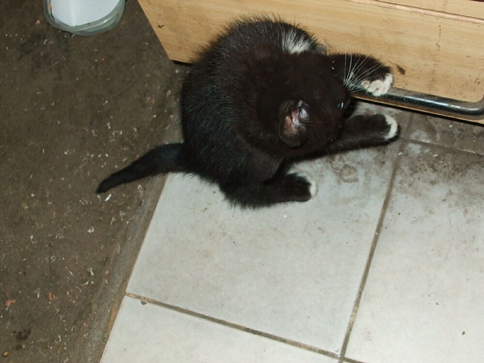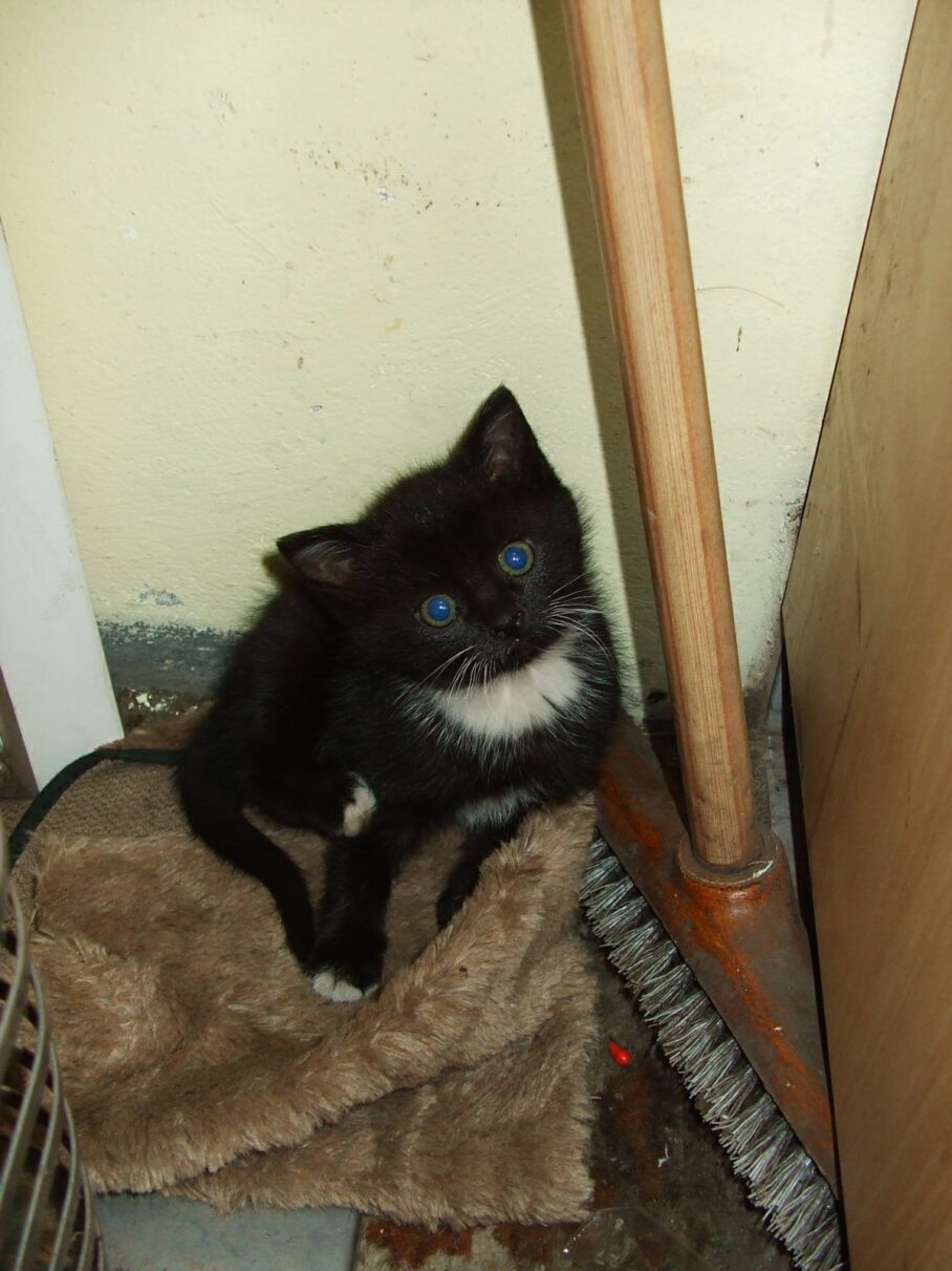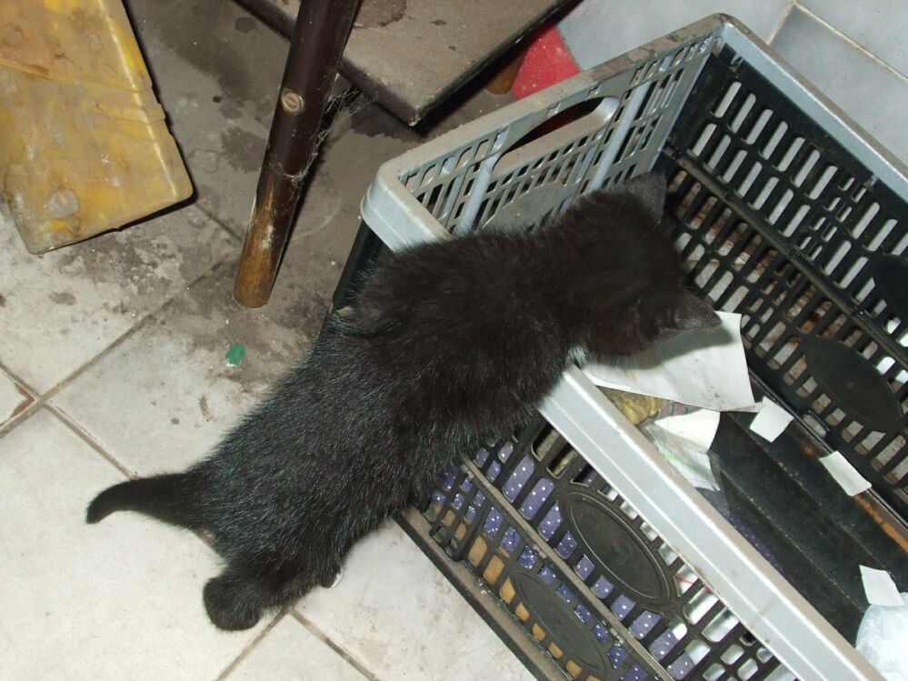 Odruch serca to coś co zawsze mnie wzrusza, będąc u znajomego wulkanizatora przy ul. Kościelnej zauważyłem malutkiego dwu lub trzymiesięcznego kotka czającego się w kąciku.