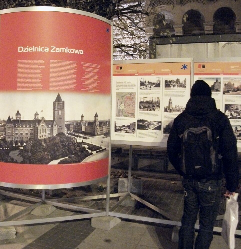 Wystawa o Dzielnicy Zamkowej przeniosła się przed zamek. Kilka zdjęć, porą wieczorową wykonanych, ilustrujących wystawę…